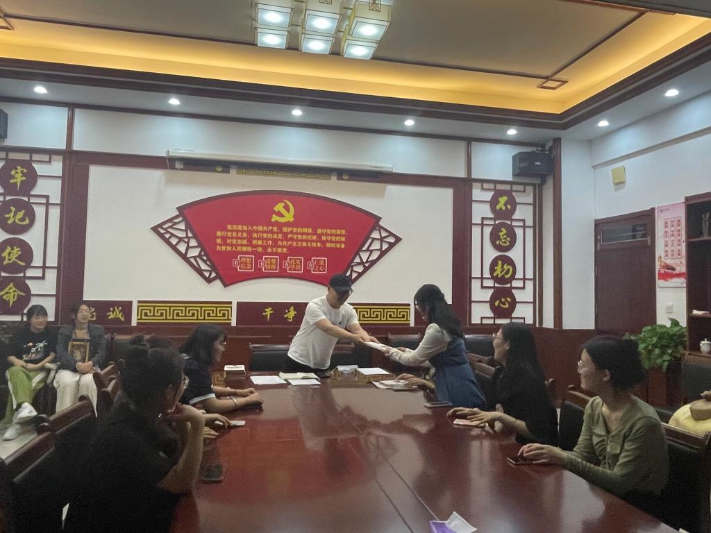 文学与新闻传播学院党委为每一名毕业生党员准备了一本崭新精美的笔记本,寓意是“开启人生新篇章”,希望所有毕业生党员在毕业后能够不忘入党初心,在新的工作岗位上继续发挥先锋模范作用,努力在青春的赛道上跑出当代青年的最好成绩。活动结束后,各学生支部进行了合影留念。