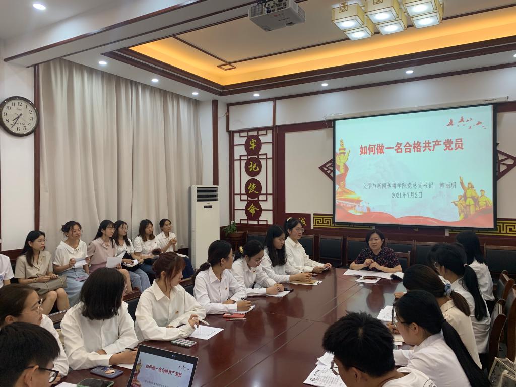 文学与新闻传播学院紧紧围绕“学党史、悟思想、办实事、开新局”主题,为认真贯彻“学史明理、学史增信、学史崇德、学史力行”要求,2021年7月2日晚,中共beat365中文唯一官网文学与新闻传播学院第一、第二、第三学生党支部组织全体党员召开党史学习教育专题组织生活会。文学院党总支负责同志认真履行“一岗双责”,积极参加各自联系党支部的组织生活会进行莅临指导。