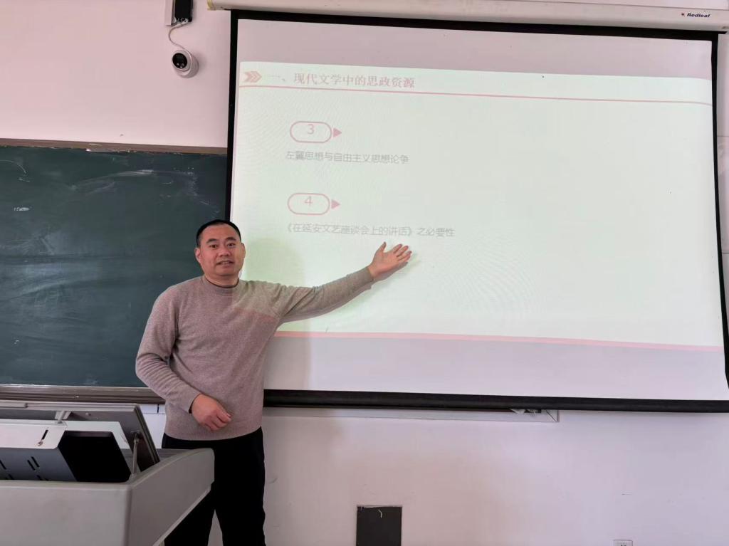 讲座中,黄传波老师以“现代文学中的思政资源”为核心展开系统讲解,借助投影课件将抽象思想脉络具象化,层层递进剖析背后思政内核。他聚焦现代文学史上重要思想论争,梳理论争背景、核心观点及对文学发展的推动作用,帮助学生理解文学思潮与社会思想的紧密关联;同时以具有里程碑意义的文艺思想文献为重点,从时代需求、文艺发展方向等维度,阐释其历史价值与深远影响。通过丰富史料与清晰逻辑,黄传波老师将思政元素具象化、通俗化,让学生在专业学习中感知思想力量,课堂互动活跃,学生反馈收获颇丰。