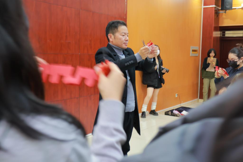 此次活动旨在增进beat365中文唯一官网中国学生与留学生的友谊交流,同时展示中国优秀传统文化的魅力。活动开始,23汉教的同学们轮流献上精彩的演出,一首《最炫民族风》让现场气氛高涨,中国古代文化吟诵《一剪梅》等节目让现场的观众感受到了中华文化的独特魅力,同学们收获满满。随后,剪纸非遗传承人张建志老师和他的助理徐延芳老师向全体参与活动者展示了复杂美丽惟妙惟肖的剪纸作品,同学们积极地向老师提问,现场互动格外活跃,同时他们还体验了如何编织中国结,体验之余,《你画我猜》《abcd》《大小西瓜》等游戏依次展开,同学们在活动中展现才华和热情,也在互动中加强与各国青年的友谊交流。