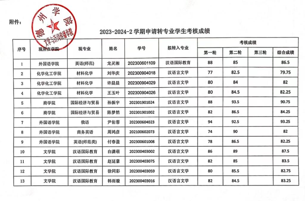 附件:2023-2024-2学期申请转专业学生考核成绩