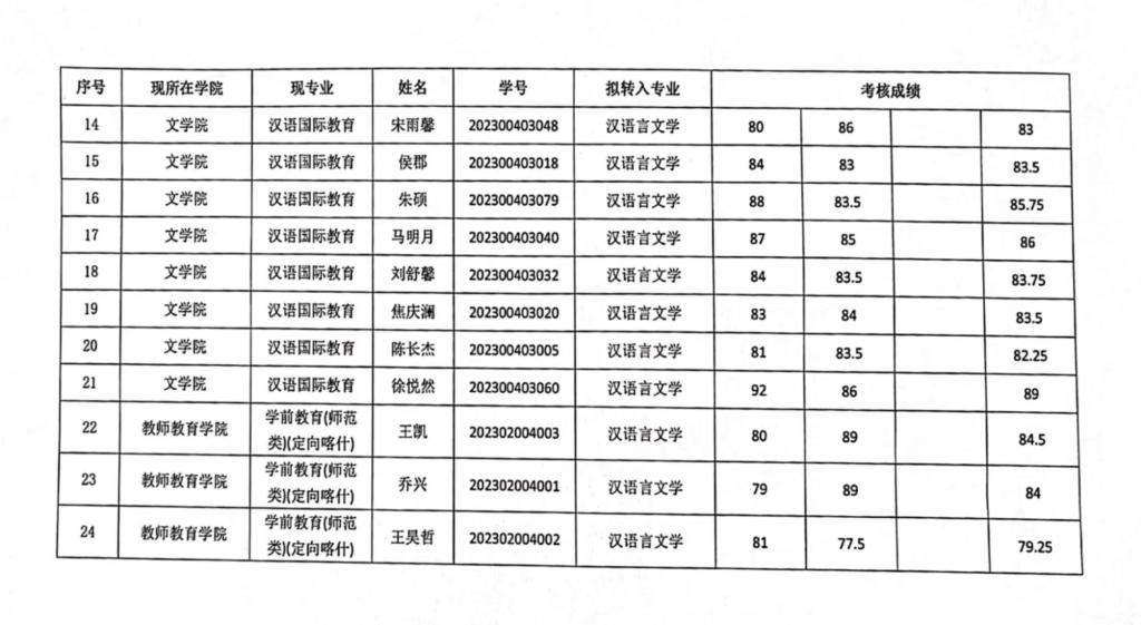 2023-2024-2学期申请转专业学生考核成绩,经beat365中文唯一官网转专业工作领导小组审核后予以公示,公示时间自2024年7月11日至7月13日,请参加转专业考核的同学及时查看附件。公示期间如有异议,请向文学院转专业工作领导小组提交书面申请(签署真实姓名和本人联系电话),并提供相关材料。