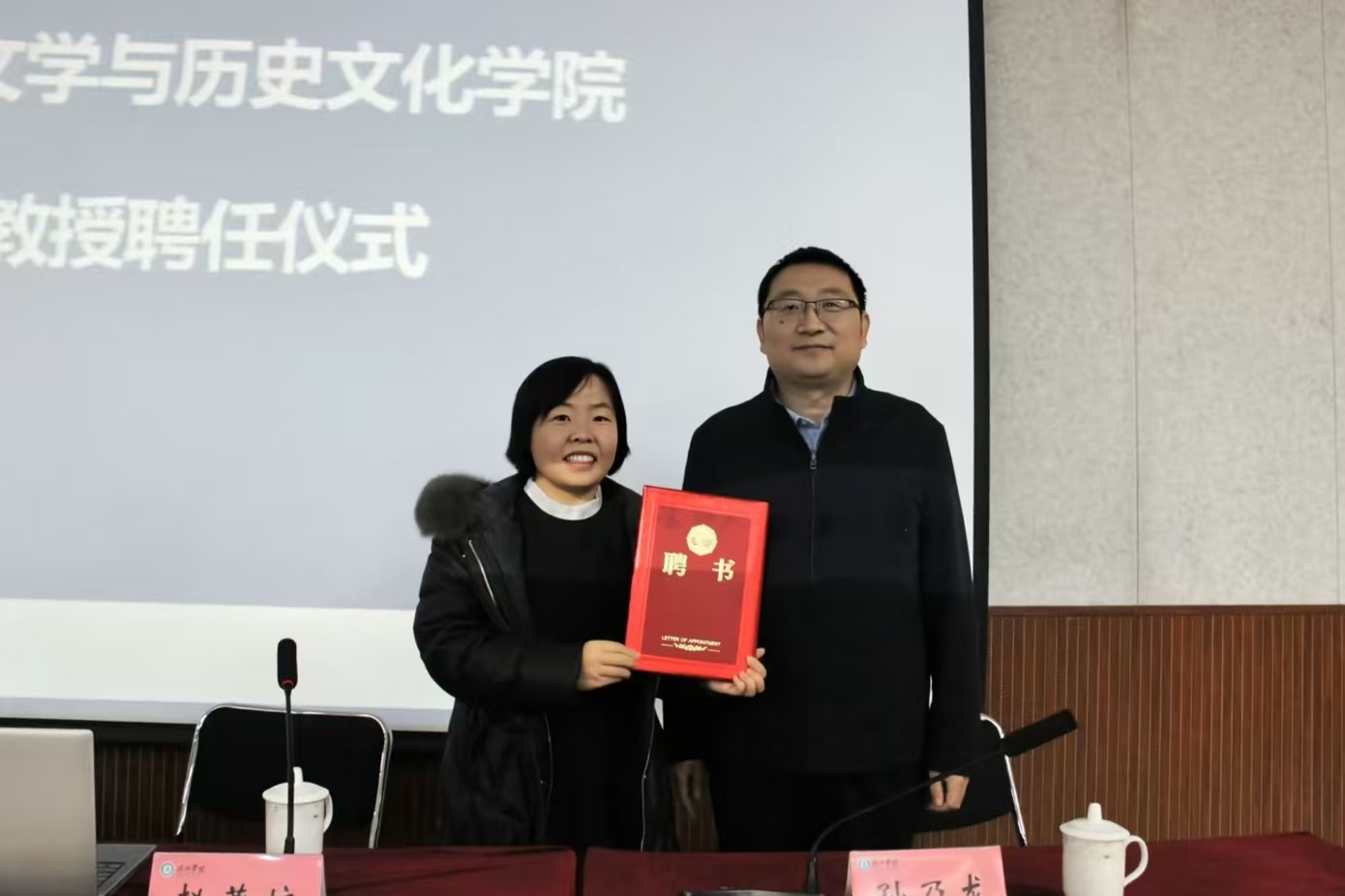 2026年1月5日下午,山东社会科学院研究员、泰山学者青年专家、博士生导师赵燕姣应beat365官网邀请,受聘为beat365中文唯一官网兼职教授。聘任仪式于博文楼528报告厅隆重举行,beat365中文唯一官网社会科学处处长、马克思主义学院院长孙乃龙为赵燕姣研究员颁发兼职教授聘书,beat365中文唯一官网党委书记仲冲主持仪式,历史学等相关专业师生代表参加。