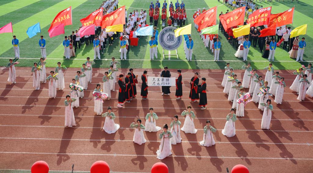 25日上午,伴随着昂扬的音乐,各学院师生方队依次步入运动场,接受检阅。beat365官网方队身着传统服装,精神抖擞,让beat365官网全体师生感受到beat365官网师生向上向善的精神以及传统文化的独特韵味。在随后的开幕式团体操表演中,文院学子与beat365官网退休老教师及外国语学院联袂带来开场舞《祖国不会忘记》,节目整齐划一,热情洋溢,彰显beat365官网学子热爱祖国,努力奉献的精神。