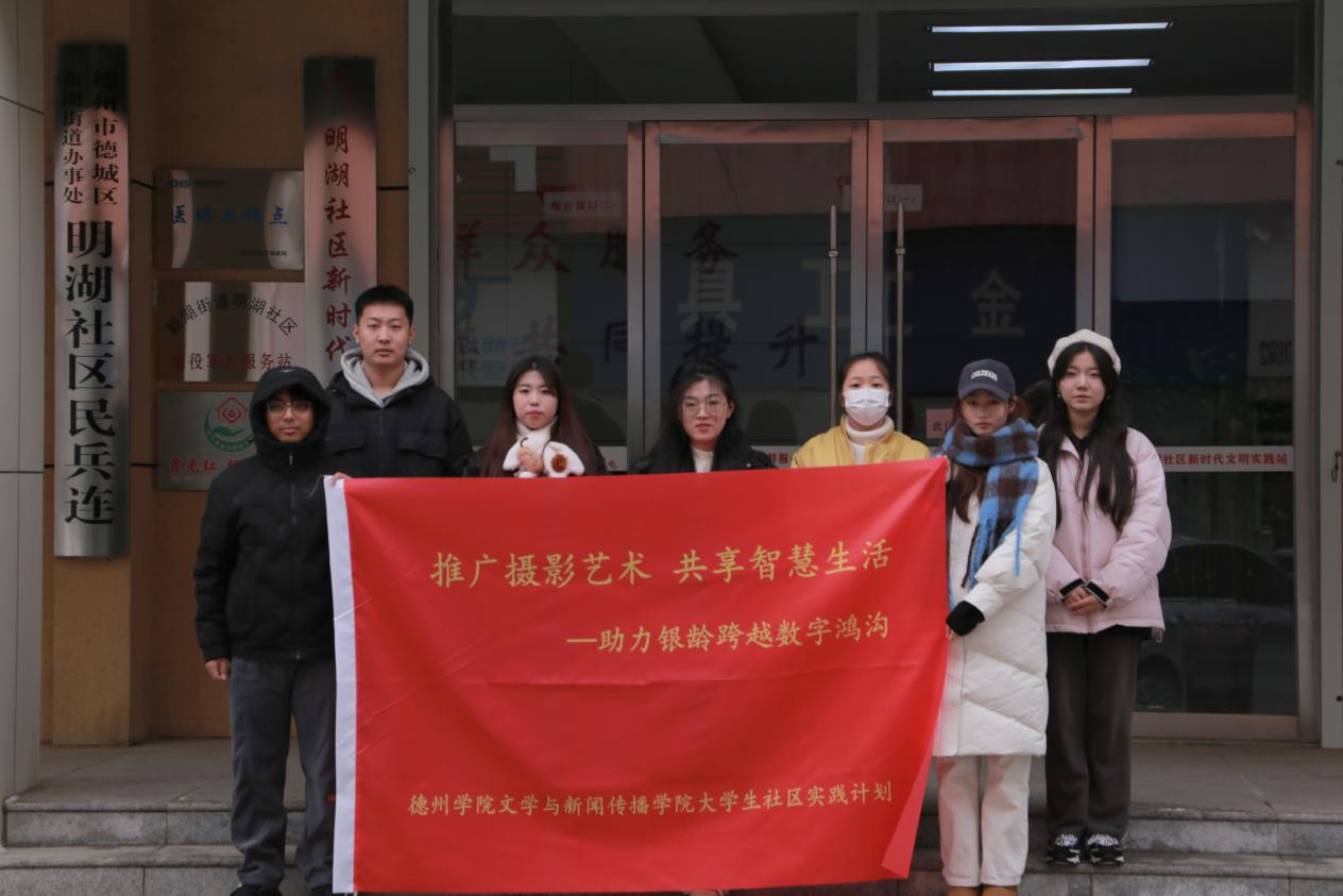 为深入贯彻落实党的二十大精神和习近平总书记对加快建设老年友好型社会的重要指示要求,更好地助力老年人跨越数字鸿沟,实现大学生服务社区,社区锻炼大学生的双赢互动、双向奔赴,12月15日,文学与新闻传播学院摄影摄像协会团支部、基层团支部走进明湖社区开展“推广摄影艺术,共享智慧生活”大学生社区实践活动。