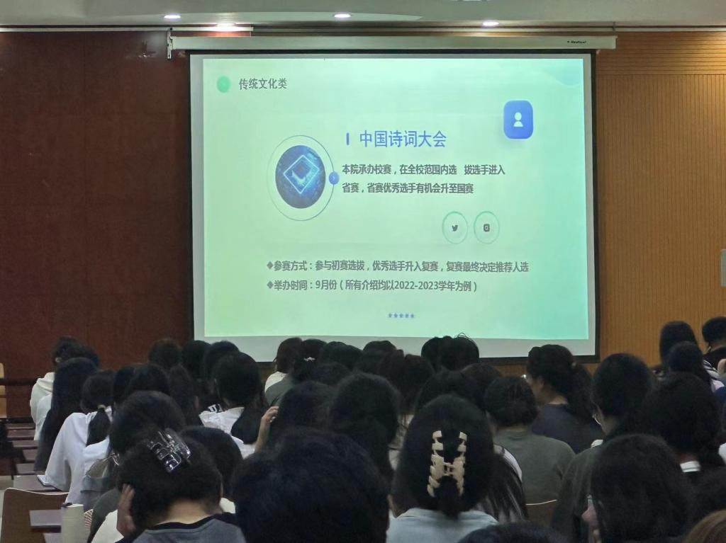 首先是文学与新闻传播学院的老师进行了山东省教师职业技能大赛的细致讲解,后由科创部成员对科创部负责的比赛项目进行了讲解。科创部的比赛项目主要分为三大类,分别是传统文化类,创新创业类和专业类赛道。
