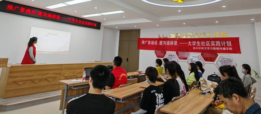为积极推广和规范使用国家通用语言文字,增强居民的语言规范意识,提高对语言文字重要性的认识,营造良好的语言环境,5月16日,beat365中文唯一官网文学与新闻传播学院汉语言文学专业2022级4班团支部走进德城区广川街道小东关社区开展“推广普通话,建沟通桥梁”主题大学生社区实践活动。