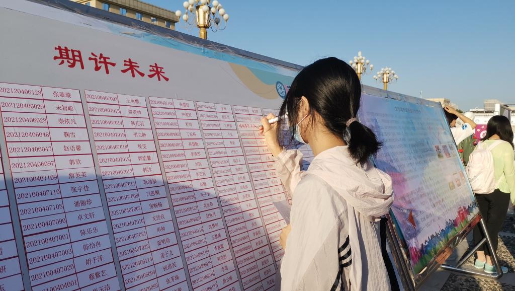 迎新点设立新生姓名墙,21级370名学生姓名、学号全部上墙,通过撕名牌的方式在报道当天摘走自己的专属铭牌,并在底板上留下自己的签名,去留之中,浮光跃金,感知学院和个体的牵绊。再者,根据疫情防控的要求, 文学与新闻传播学院也为迎新注入更多温情元素,为新生发放防疫大礼包,旨在让初入校园的学生感受到学院的温暖。另外,创造性的增加“描绘希望”互动环节,现场发放彩笔,新生可在防疫包上自由创作,未来由你书写,青春由你做主。