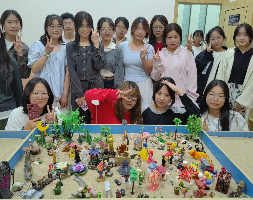 活动过程中开展了“你画我猜”“大风吹小风吹”以及“共绘沙世界,同行启新程”三部分富有趣味性的活动,同学们积极参与,活动现场欢声笑语与心灵的交流交织在一起,他们勇于表达自我,展现自我,彼此相互协作取得游戏的胜利,并在活动最后共同完成了沙画作品并命名为《缤纷奇境》。本次活动让大家卸下疲惫,感受集体带来的温暖与力量,传递爱和阳光,使大家感受到了心理健康的必要性与重要意义,共同守护美好未来。