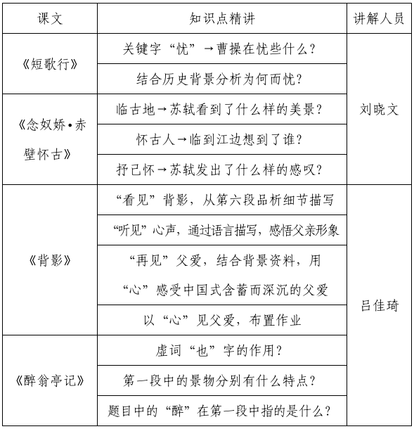 学贵得师,亦贵得友。刘晓文以《短歌行》和《念奴娇·赤壁怀古》为例,准备了5个知识点精讲,学生们在限定时间内积极备课,随后上台模拟授课,展示自己的教学思路。授课环节,同学们讨论热烈,有的同学注重诗词的诵读指导,通过教师范读、学生齐读、个别朗读等方式,让学生在诵读中体会诗词的韵律之美;有的同学则侧重于诗词的写作手法分析,引导学生学习诗词中的借景抒情、用典等技巧,为学生今后的写作提供借鉴。在示范授课环节,刘晓文以丰富的教学内容和精彩的讲解方式巧妙融合知识讲解与情感引导,将古诗词的深邃意境与文化内涵娓娓道来。