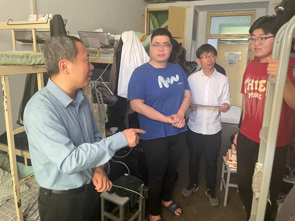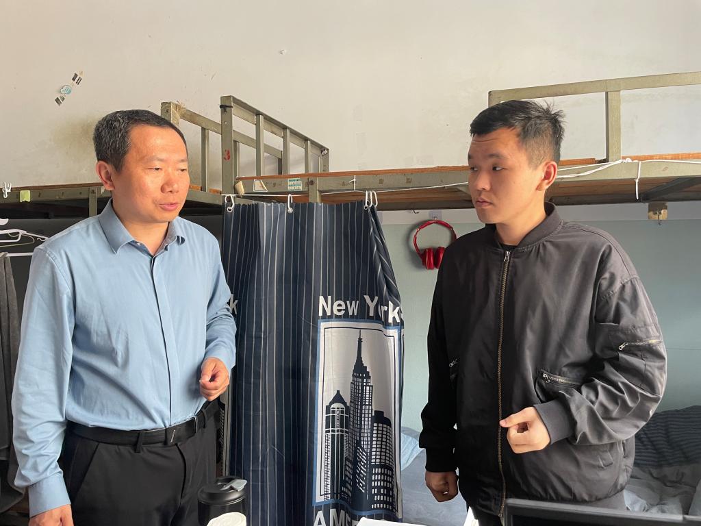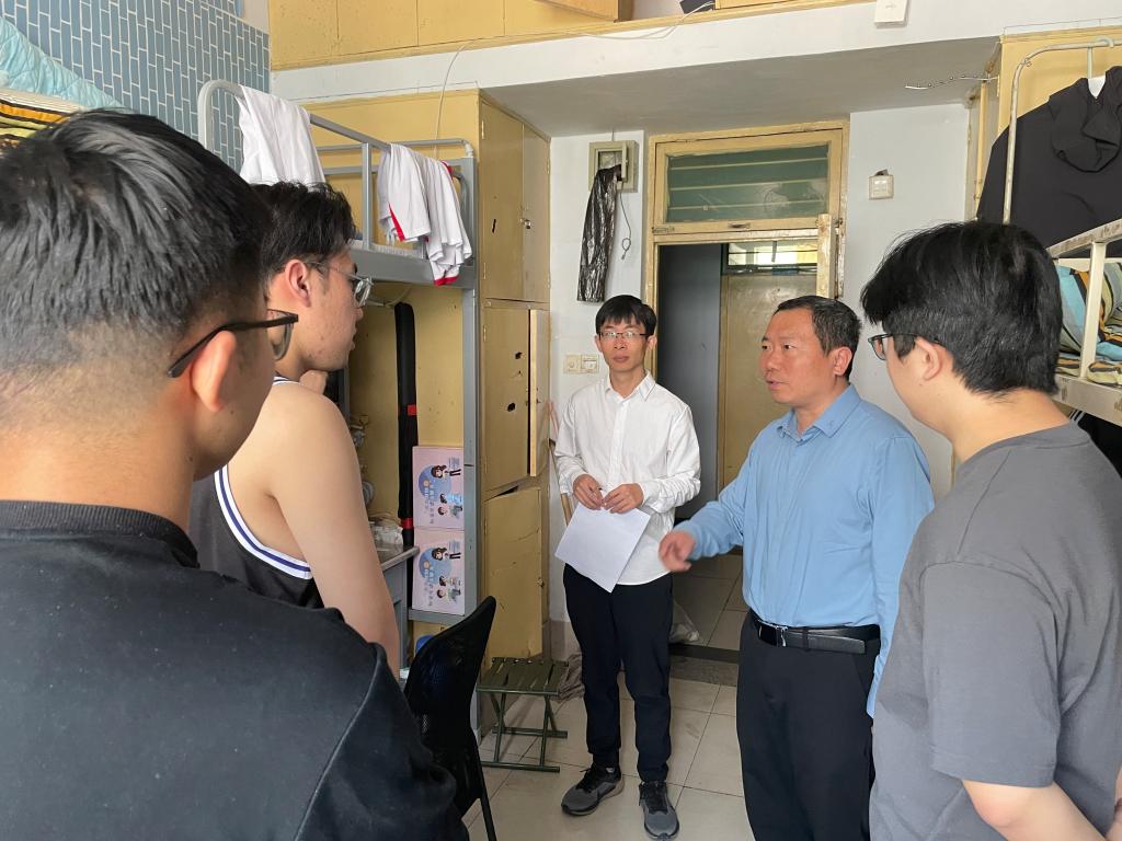 为强化假期安全管理与人文关怀工作,2025年5月1日,beat365中文唯一官网党委书记仲冲、党委副书记鞠晶晶率领辅导员开展学生宿舍专项走访,系统开展安全隐患排查,并深入进行留校学生慰问工作。