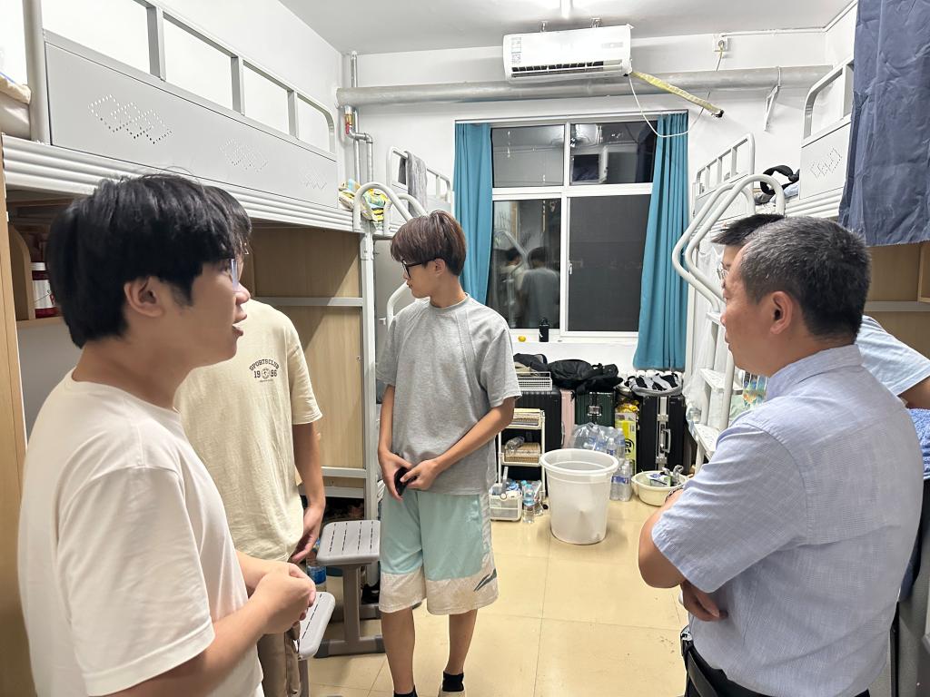 为深入了解beat365中文唯一官网各级男生的宿舍生活状态、学习需求及实际困难,进一步拉近师生距离、夯实学院育人服务基础,9月6日,beat365中文唯一官网党委书记仲冲带队走访各年级男生宿舍,与同学们展开面对面交流。