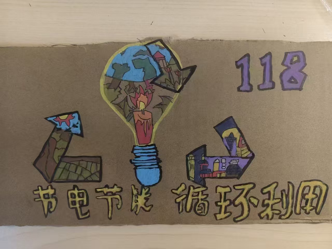 活动中,同学们积极利用回收的旧纸箱、塑料瓶、落叶等闲置物品,结合水彩绘制等方式,共同打造出一系列富有特色的宿舍门牌:纸箱被裁剪为各色形状并绘上缤纷色彩;扭扭棒巧妙成型,成为精致装饰;落叶通过拼贴重现自然之美;更有灯球、贴纸等元素的融入,为设计增添了温暖而生动的视觉效果。这些风格多样的门牌,不仅美化了宿舍环境,也凝聚了宿舍成员之间的默契与情谊。