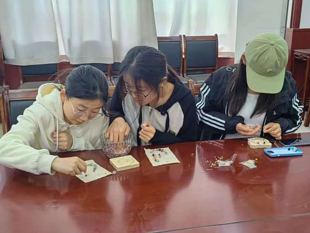 活动过程中,同学们自由分组,共同讨论确定串珠作品的主题。他们充分发挥想象力,挑选珠子、设计图案、进行串制,现场一片繁忙而有序的景象。主持人及场务人员巡回指导,为同学们提供创意启发与技术支持。经过一番努力,各小组都完成了精美的串珠作品,如友谊手链、梦想风铃等。在作品展示与分享环节,每组介绍创作思路、过程及团队协作故事。其他参与者也纷纷发表对作品的感受与看法,分享在创作过程中的内心体验。通过这次活动,同学们不仅收获了精美的手工作品,更在团队合作中增强了自信心和团队意识。