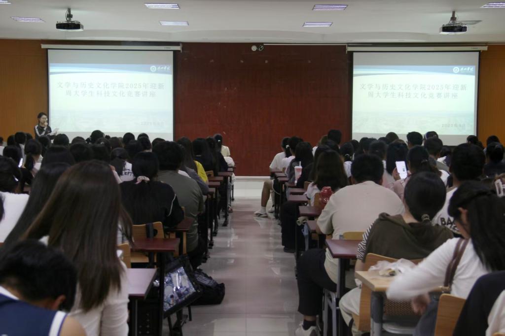 宣讲会重点介绍了“互联网+”大学生创新创业大赛、“挑战杯”系列竞赛、中华经典诵写讲大赛、中国诗词大会等多项国家级重要赛事。宣讲人针对新生普遍关注的“文科生能否参与科创竞赛”等问题作出回应,指出科技文化竞赛赛道多元,文科生凭借对文化与技术的敏感度,能在文创科技、学术创新等领域发挥独特优势,找到适合自身的参赛方向。活动强调,各类竞赛不仅是提升综合能力的实践平台,更是人文与科技交叉融合的重要载体。