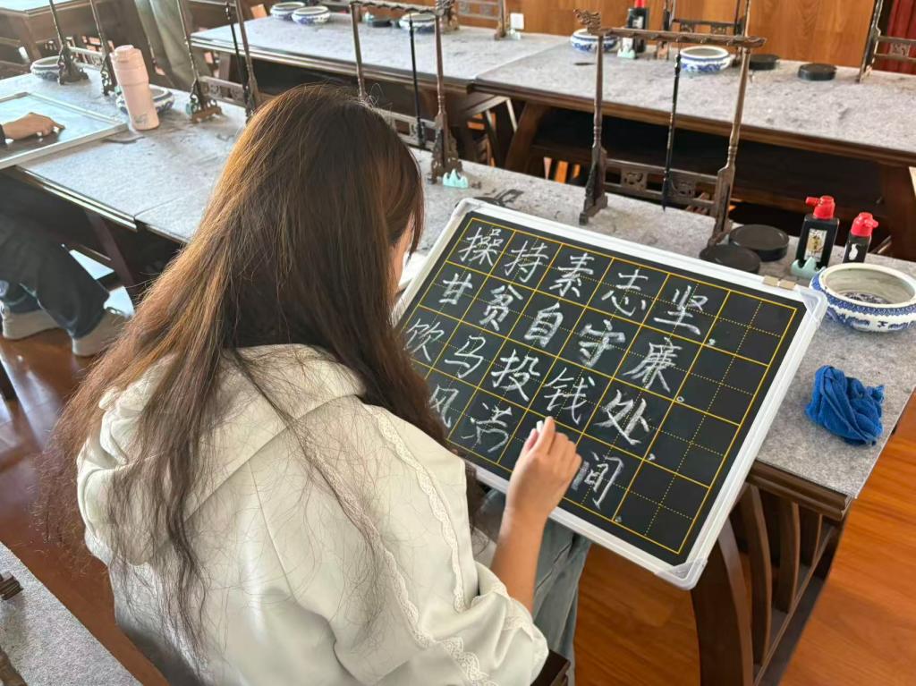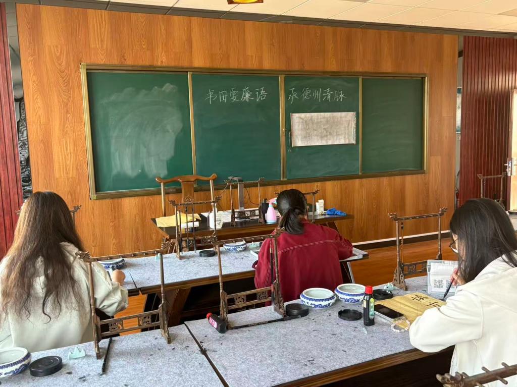 本次活动旨在通过毛笔书写的艺术形式,引导同学们感悟传统书法魅力,在挥毫泼墨间传承德州清廉文脉与中华优秀传统文化。活动紧扣弘扬廉洁文化核心,同学们选取田雯廉洁诗词及相关事迹典故,以书法为载体,展现对清廉精神的敬仰与追求。宣纸上的一撇一捺,不仅是对书法技艺的锤炼,更承载着对廉洁文化的深刻理解,充分彰显出新时代学子传承清廉基因、弘扬传统文化的使命担当。
