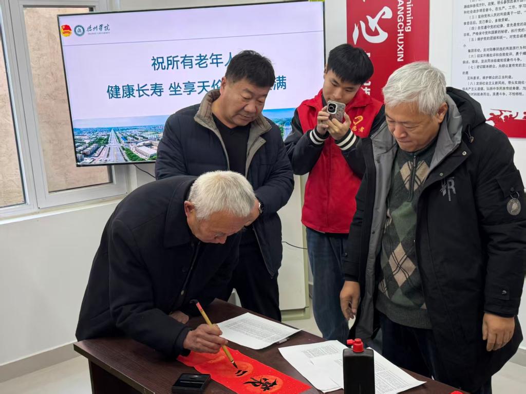 活动现场,志愿者们聚焦老年人反诈需求痛点,通过生动直观的PPT演示,深入揭露保健品推销、虚假投资等常见骗局的套路和陷阱。志愿者们耐心细致地手把手教学,帮助老年人掌握识别诈骗信息的核心技巧,同时向村民逐一发放反诈宣传页,用通俗易懂的语言强化防范意识,筑牢乡村反诈“安全网”。反诈宣讲环节结束后,中华优秀传统文化传播环节温情启幕。刘耀辉教授结合自身专业积淀,深入浅出地解读书法艺术背后的中华文化底蕴,让在场村民与书法爱好者深刻感受传统艺术的独特魅力。在刘教授的现场指导下,书法爱好者们挥毫泼墨,一笔一划间饱含对新年的美好憧憬,墨香萦绕的活动现场洋溢着浓厚的文化气息与节日氛围。随后,志愿者们将一副副寓意吉祥的春联与精心筹备的慰问礼品送到村民手中,让大家在收获文化滋养的同时,切实感受到来自学院的贴心关怀。“不仅学会了怎么防骗,还拿到了喜庆的春联,这个活动太实在了!”活动结束后,村民们纷纷点赞,直言在学到实用反诈知识的同时,也感受到了浓浓的年味与温暖。此次创新推出的“数字助老+墨香送福”志愿服务模式,既有效提升了乡村老年人的风险防范能力,又让中华优秀传统文化在基层实践中焕发新生机,实现了公益服务与文化传承的双向赋能。