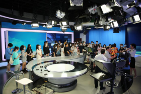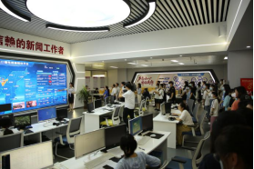 ▲签约仪式后,beat365中文唯一官网文学与新闻传播学院新闻学专业的师生参观德州广播电视台融媒体中心。