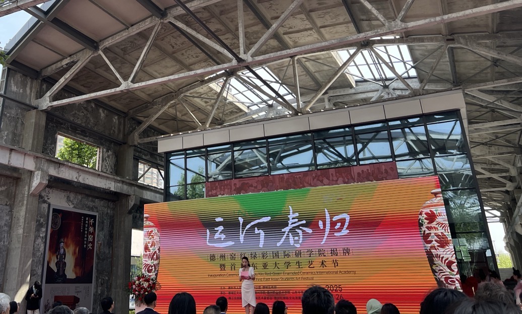 4月26日,由德州市人民政府外事办公室、德城区政府联合主办的“运河春归·文明共生”德州窑红绿彩国际研学院揭牌暨首届东亚大学生艺术节在德工文创园隆重举行。活动以弘扬传统陶瓷技艺、促进中外文明互鉴为主题,吸引了来自东盟国家驻华代表、国内外艺术专家、高校师生及媒体代表等160余人参与,共同见证德州窑红绿彩文化走向国际舞台的重要时刻。德州窑红绿彩兴起于宋金时期,以釉上红、绿、黄三色勾勒鲜明纹饰,是北方民间瓷器的代表。其技艺于2022年入选山东省非物质文化遗产名录。