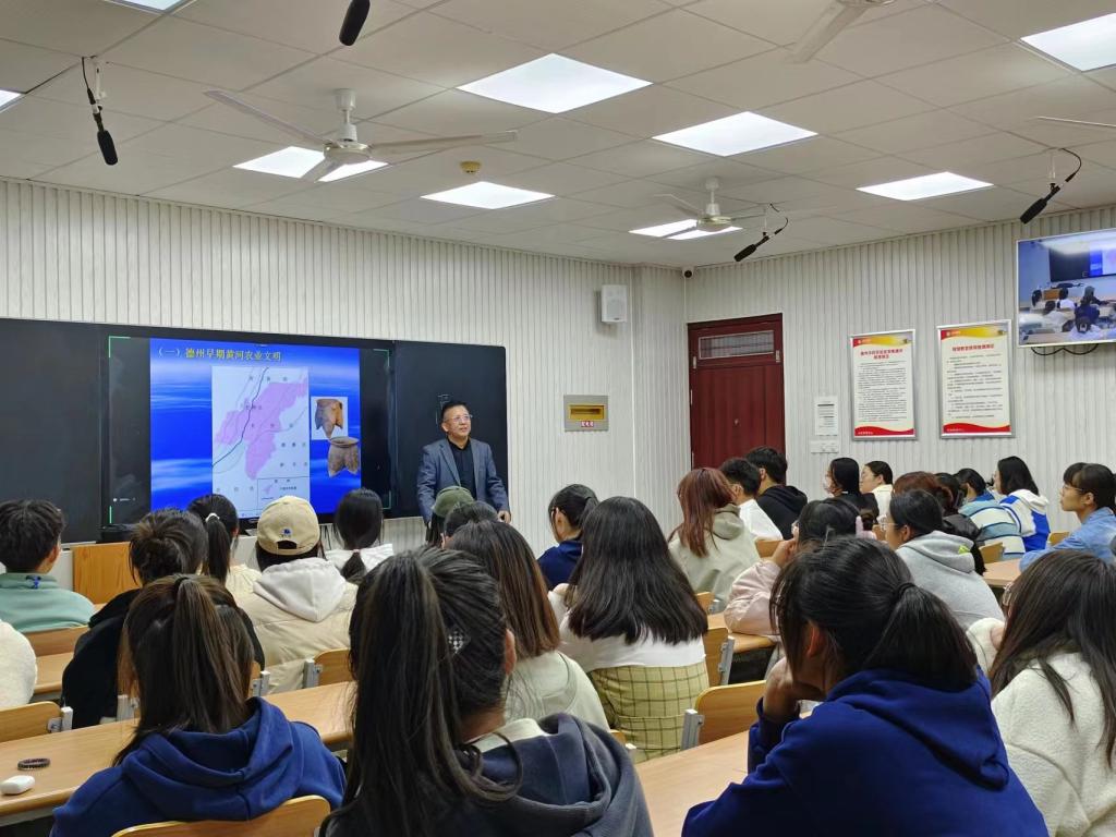 2022年10月11日,文学与新闻传播学院在博文楼智慧教室举办“黄河——大运河文化”学术讲座,德州地域文化研究中心主任王守栋教授应邀作题为《“德”文化的渊薮——黄河文化与运河文化融合的结晶》专题报告。文学院2022级全体新生现场以及在线聆听。