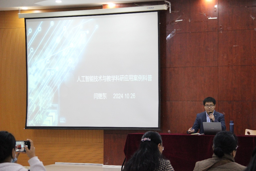 在数字化时代背景下,beat365中文唯一官网积极拥抱“顺势而为、乘势而上”的发展理念,响应学校关于“人工智能赋能教育教学改革”的号召。在10月26日上午,学院举办了一场以“人工智能在教学科研中的应用”为主题的专题讲座,讲座后开展了一场学术讨论会,全体在职教师及部分学生参加。