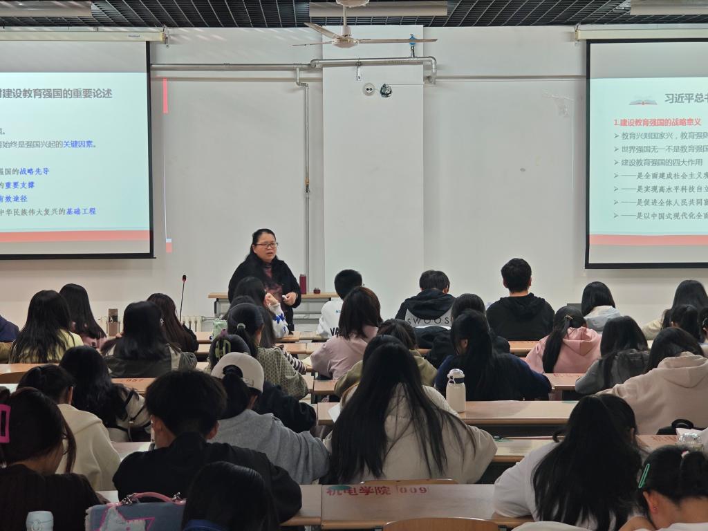 讲座邀请了德州市东城小学的马小红校长主讲,马校长围绕习近平总书记对建设教育强国的重要论述的解读、教师职业规范、新课标视野下教师能力需求、教师自主成长密码四个方面展开讲解,对当今教育强国的重要任务和意义、教育的有效方式、教师工作新要求进行了详细论述,让学生更加明确教师的职业需求和努力的方向。马校长的讲座内容丰富,结合案例,深入浅出,形象生动。在座的师生认真听讲,积极参与互动,并且踊跃回答问题,现场气氛热烈。