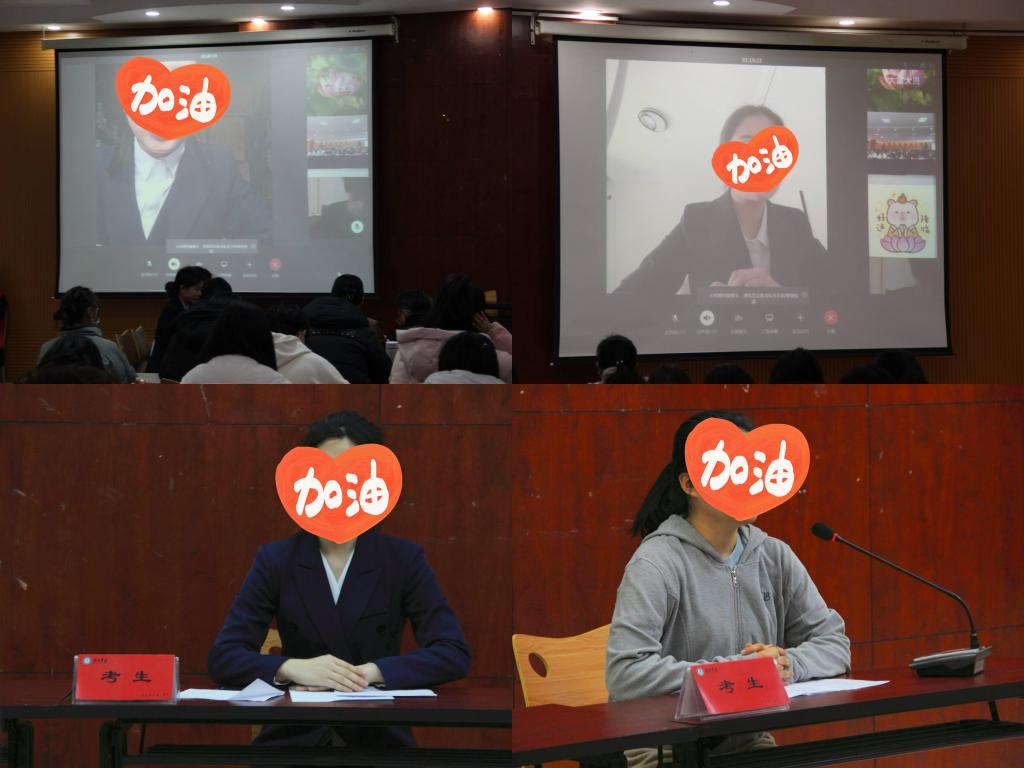 蜕变成长,朋辈面对面。为增强互动性,将面试理论经验落实到实践中,本环节采用结构化面试形式,现场全真模拟面试。从学院15位公务员考试进面的同学中选择了四位考生代表,运用“7+7”、“5+5”的“思考+答题”时间组合模式,四位考生分别进行了模拟面试。评委们逐一现场点评并提供了针对性的建议,帮助学生们提升面试技巧,现场反映热烈。