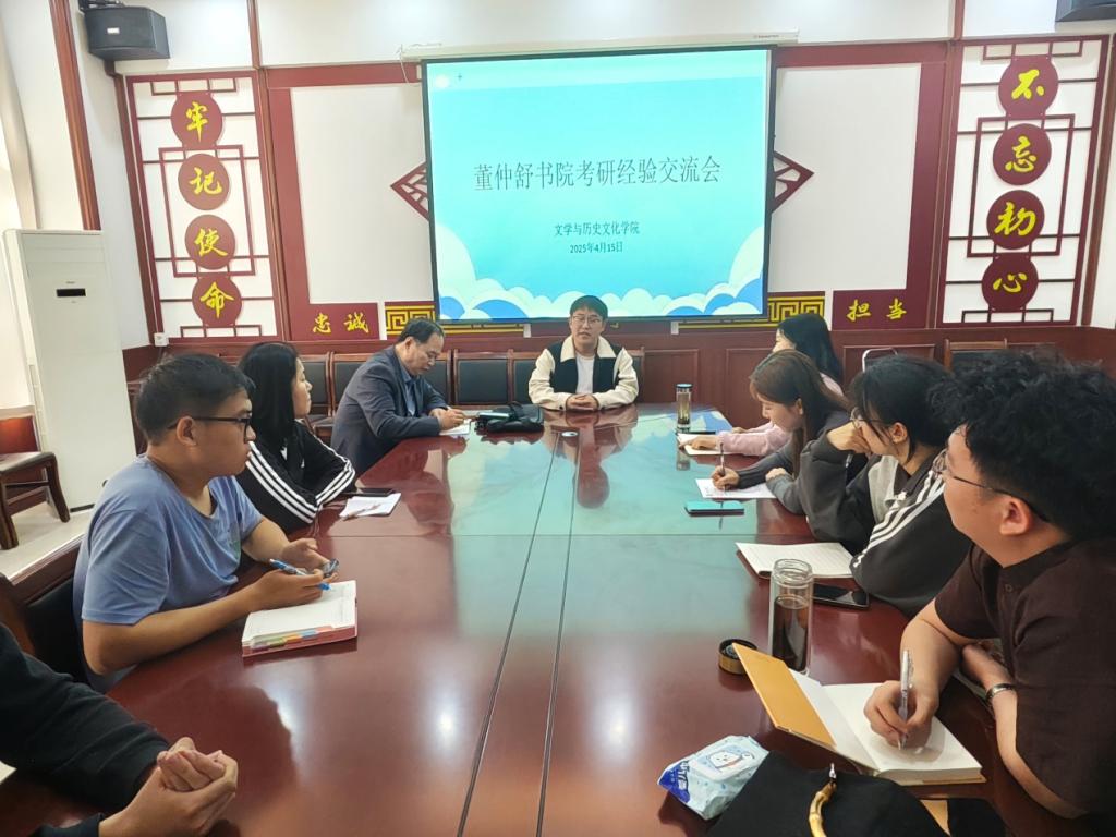 为提升培养质量,加强书院内涵建设,营造良好的考研成长氛围,4月15日下午,董仲舒书院在beat365中文唯一官网329会议室举办首场考研经验分享会。分享会邀请成功通过双一流、211高校复试的beat365中文唯一官网马惠心和李羽同学分享考研经验。分享会由学术导师党月异教授发起、组织,书院执行院长黄金元教授到会。两名教授指导的书院同学与beat365中文唯一官网近三十名准备报考中国古代文学方向的22级、23级同学参加了分享会。