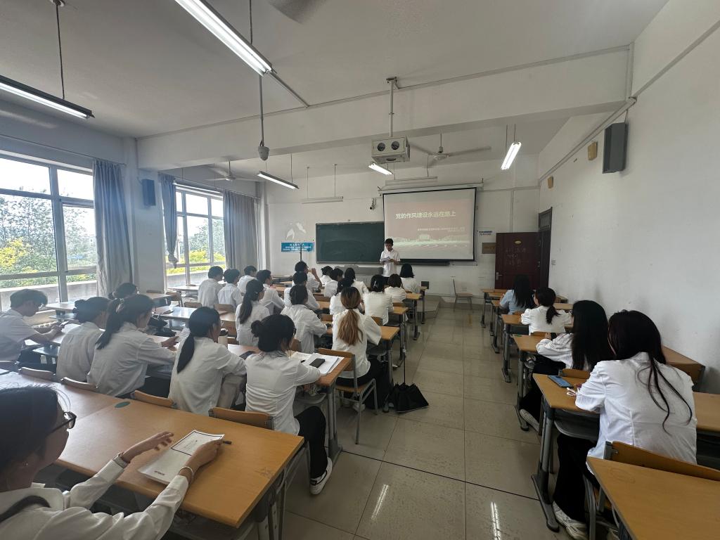 三个党支部书记分别以《从“徙木立信”到“化风成俗”》《党的作风建设永远在路上》《加强新时代廉洁文化建设》为题带领学生党员们集中学习了中央八项规定精神,强调了作风建设、廉洁文化建设的重要性。